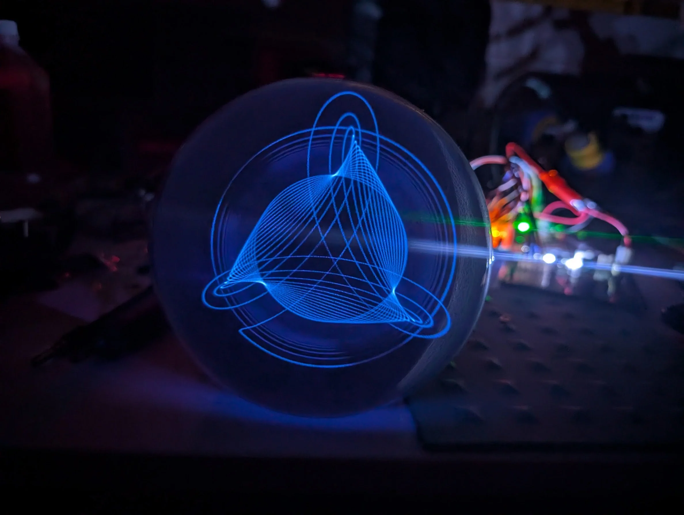 Currently, it is capable of running a tube in X/Y mode, Z-axis control is current a work in progress. Seen on the right is a P11-phosphor tube showing some of the graphics the tube is capable of. There are no pixels, the display is truly drawing those lines as you see it.